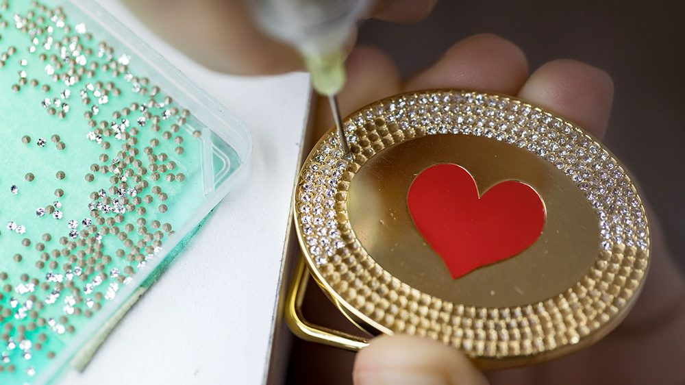 Vastissima selezione di strass di diversi tagli e e colori che applichiamo sui prodotti mediante incollaggio direttamente durante la fusione.